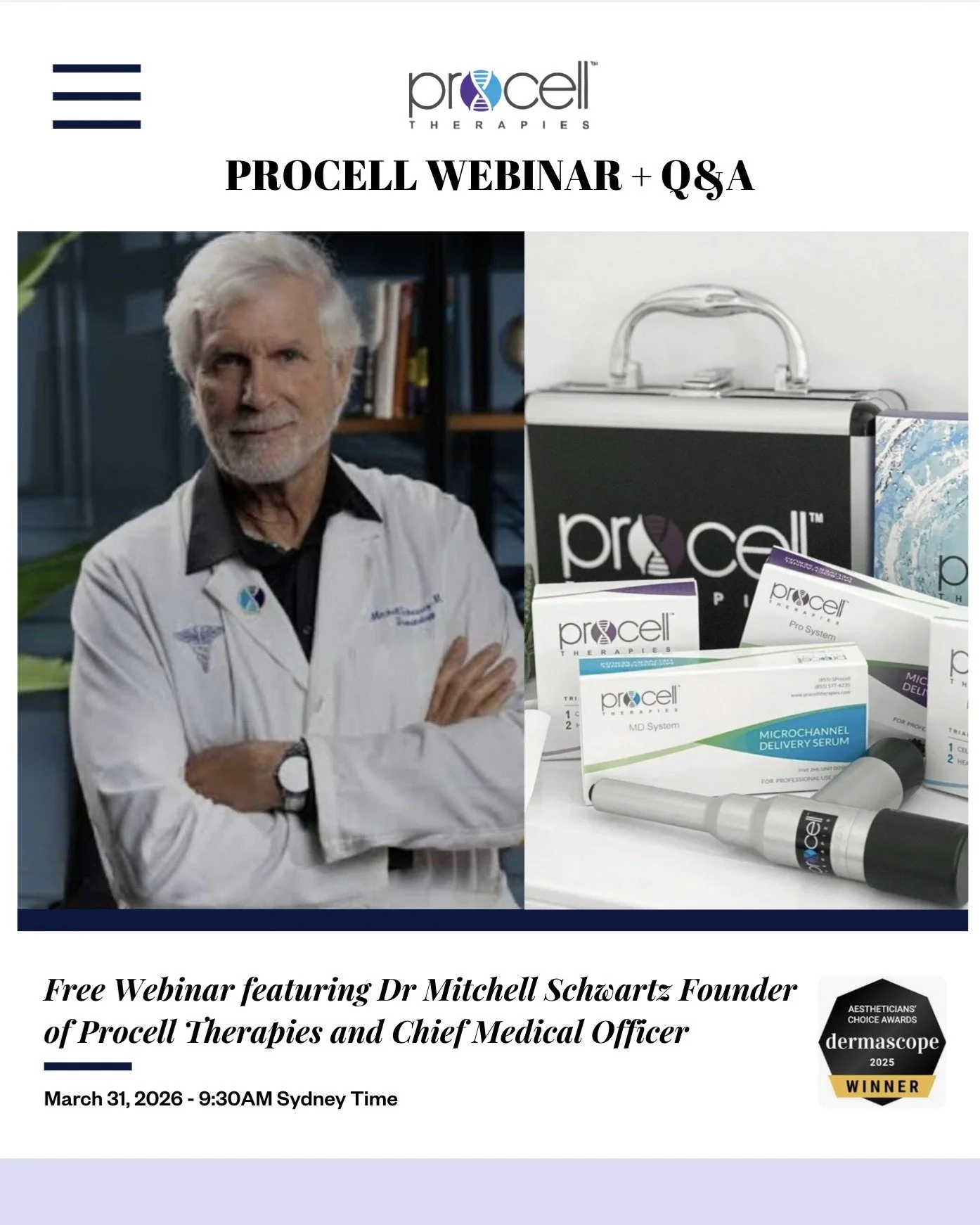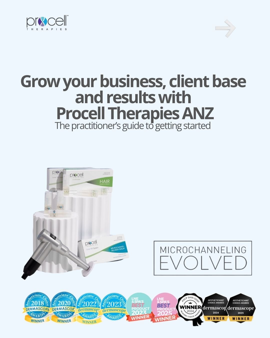 The calendar is for a skin clinic specialising in Procell Therapies Microchanneling treatment, Procell Stem cell-derived serums and Procell Step 1 and 2 Aftercare
